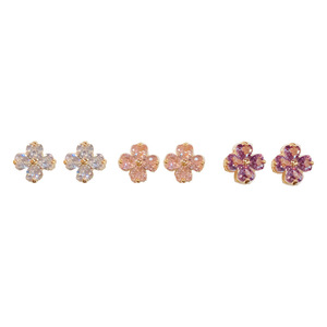 金色-三色四叶花套装耳钉(加厚真金电镀)