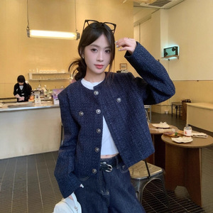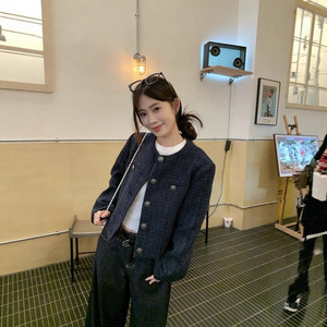 韩系名媛短款小香风外套女 2025秋季单排扣复古法式气质百搭上衣