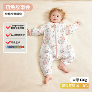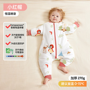 婧麒[暖姜]婴儿睡袋春秋冬季恒温分腿宝宝睡袋防踢被子四季通用
