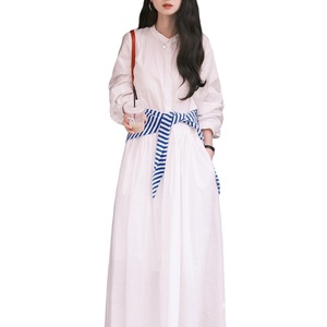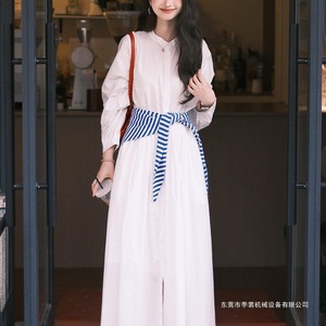 法式白色长袖衬衫连衣裙子女2025新款早秋气质感宽松显瘦长裙扎染