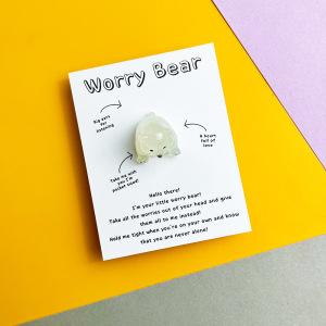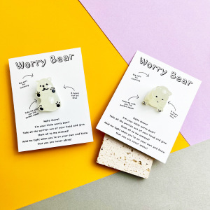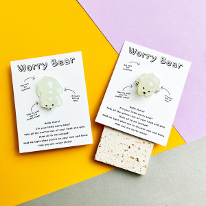 跨境Worry Bear 有趣担忧熊安慰卡 可爱夜光北极熊树脂口袋拥抱卡