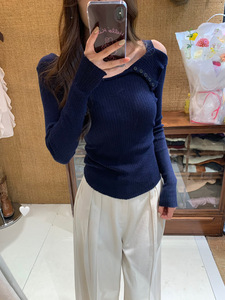 2025早秋新款设计感一字肩针织衫韩系长袖女毛衣修身露肩打底上衣