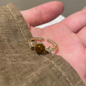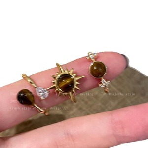 金色太阳花虎眼石戒指女轻奢小众高级感食指戒美拉德叠戴复古指环