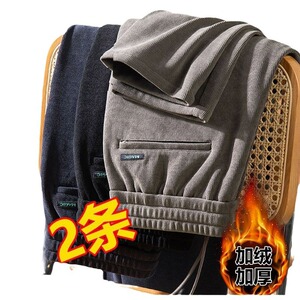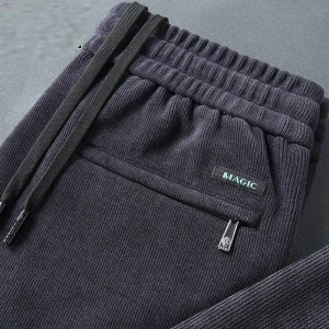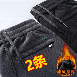 秋冬厚款条绒男裤灯芯绒松紧腰男士运动裤直筒宽松休闲裤男加绒款