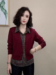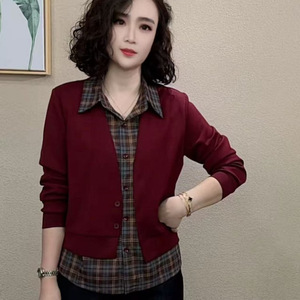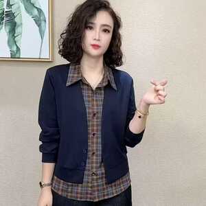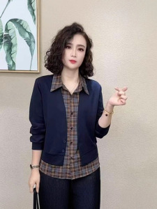 2025秋季新款胖MM大码宽松显瘦翻领假两件套显瘦休闲中年妈妈女装