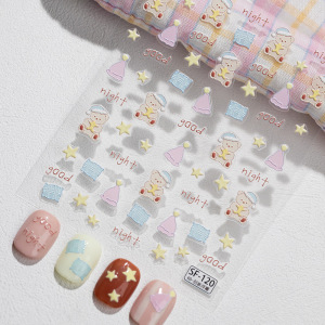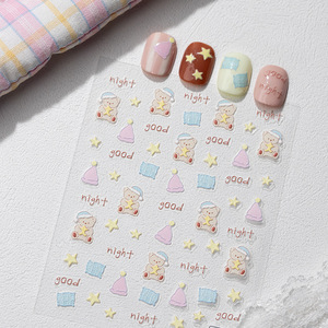 Sky新款晚安Goodnight枕头小熊美甲贴纸6D立体浮雕卡通星星指甲贴
