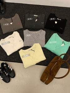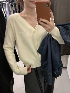 MISS密思家-秋季新款韩系简约风字母刺绣V领长袖针织开衫女11505