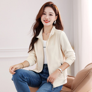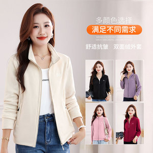 时尚休闲立领双面绒抓绒衣绒衫外套女秋冬中年妈妈装保暖夹克开衫