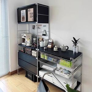 黑色简约不锈钢包豪斯书架货架落地网红置物架厨房多层收纳架客厅