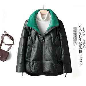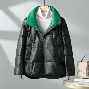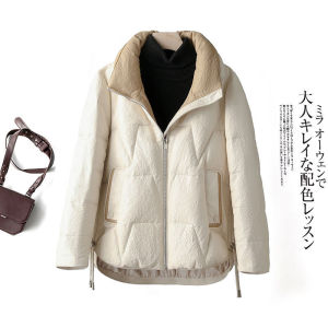 海宁羽绒服女秋冬新款休闲绵羊皮皮夹克立领短款轻薄羽绒外套