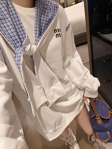 高品质miu家秋季新款韩系学院风格子拼接宽松卫衣配格子披肩上衣