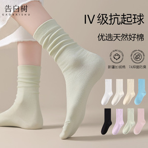 白色袜子女春秋吸汗透气无骨中筒袜子纯色月子袜女堆堆袜诸暨袜子