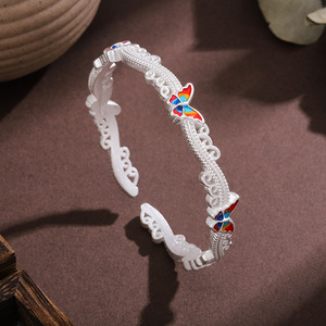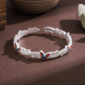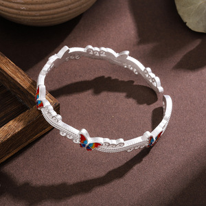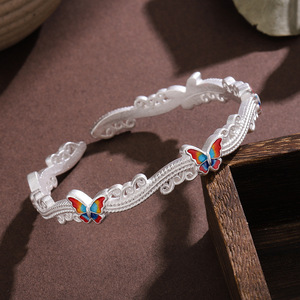 白铜镀银手镯珐琅彩蝴蝶波浪手镯新中式国风小众实心闭口镯子