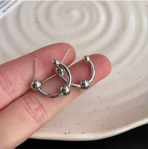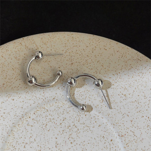 个性半圈C型耳环银针女酷飒风简约时髦潮人耳圈小众独特耳钉耳饰