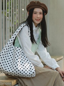 韩国小众设计25春夏简约风新款kanari波点图案两面背单肩手提包女