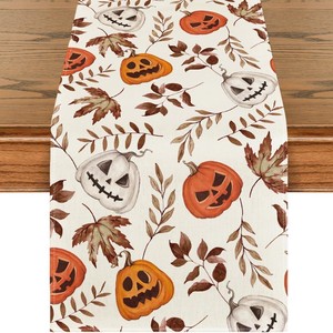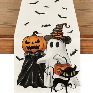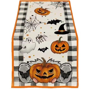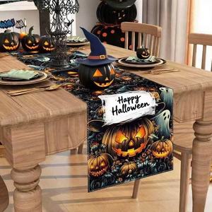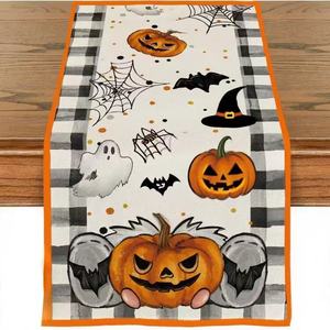 新款万圣节南瓜幽灵桌旗客厅party高级感轻奢桌面装饰布长条餐巾
