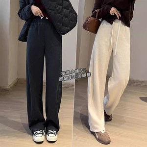 灰色窄版阔腿裤女秋冬2025醋酸羊毛宽松镰刀卫裤小个子直筒运动裤