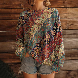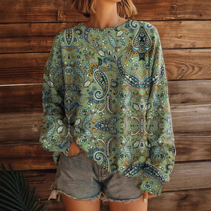 跨境货源秋冬新款亚马逊wish 欧美 长袖圆领复古西部风格卫衣5921