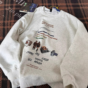 时尚潮流美式慵懒chic圆领卫衣女秋冬新款趣味印花情侣休闲上衣潮