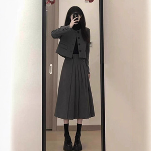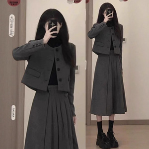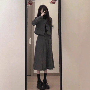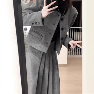 富家千金小香风套装女秋冬新款小众毛呢外套设计感半身裙子两件套