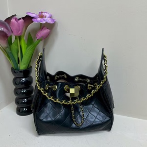 小香风油蜡皮抽绳hobo嬉皮包菱格绣线链条水桶单肩腋下包外贸批发
