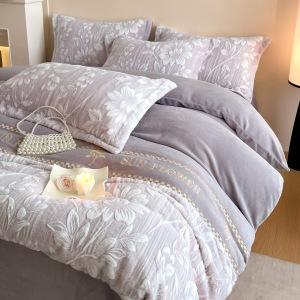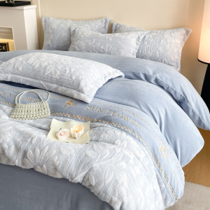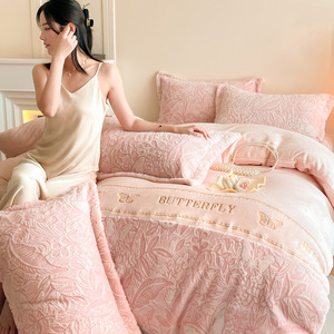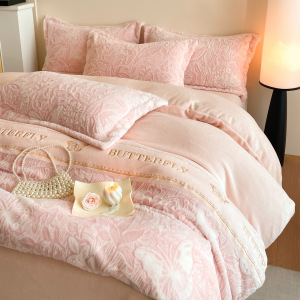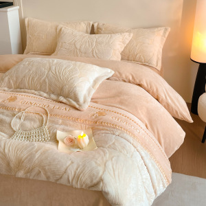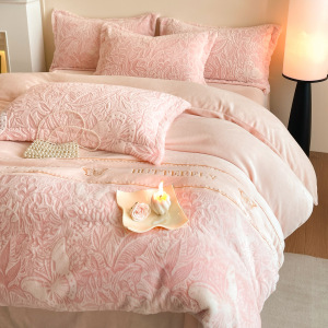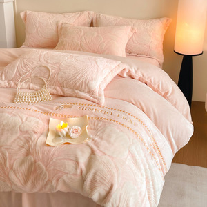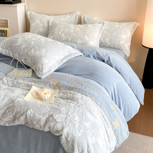 A类母婴冬季兔毛绒雕花牛奶绒四件套加厚保暖高克重床单被套床品