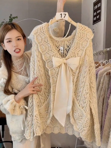 2025秋冬季别致绝美镂空针织上衣女外穿温柔软糯慵懒风蝴蝶结毛衣