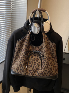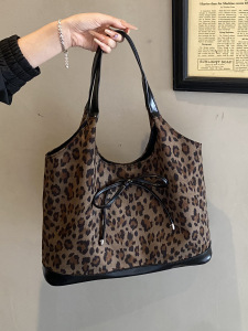 休闲大容量豹纹包包女2025新款时尚通勤单肩腋下包复古手提托特包