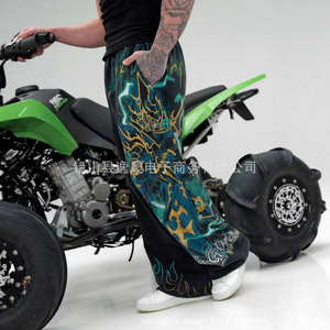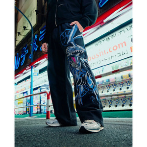 跨境新款美式街头宽松阔腿长裤Y2K舒适休闲运动裤男女同款直筒裤