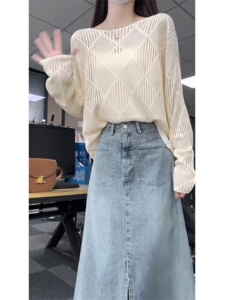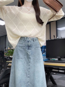 牛仔半裙【早秋穿搭一整套时尚感/2025超火穿搭一整套/简单大方感穿搭/早秋减龄一整套穿搭/早秋穿搭