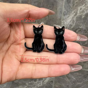 跨境新款可爱黑色猫咪耳环平面亚克力创意卡通动物迷人的黑猫耳饰
