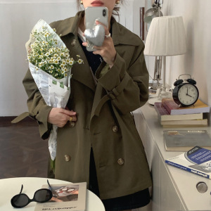 现货实拍法式复古翻领双排扣短款系带风衣女宽松显瘦休闲外套chic