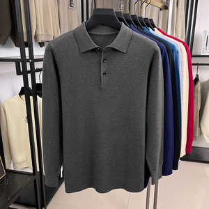 秋冬加厚保暖针织羊毛衫男士翻领纯色打底衫中年休闲柔软亲肤毛衣