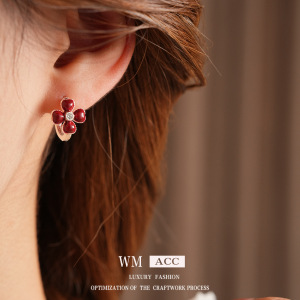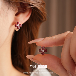 滴油锆石花朵时尚耳环轻奢设计高级感精致耳扣小众个性百搭耳饰女