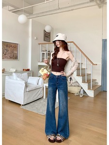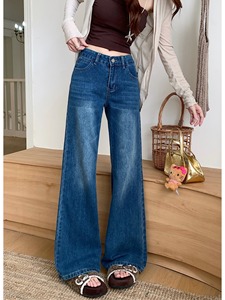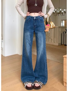 小个子美式辣妹微喇牛仔裤女夏季2025新款低腰百搭蓝色宽松阔腿裤