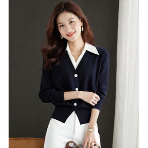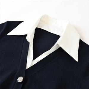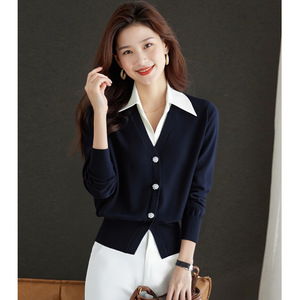 轻熟风假两件翻领长袖针织衫女2025年秋季新款设计感气质百搭上衣