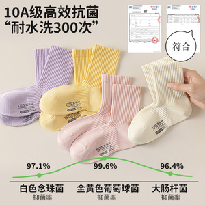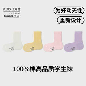 女童袜子纯棉a类中大童秋冬季无骨儿童运动袜抗菌学生直角中筒袜