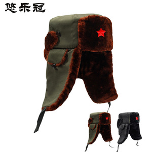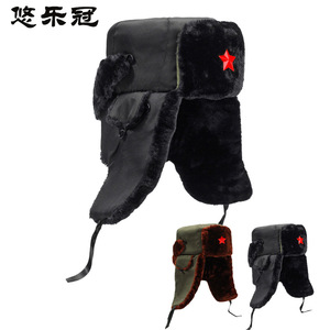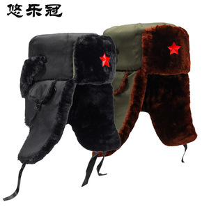 雷锋帽冬季加绒加厚保安执勤帽子男款滑雪帽中老年保暖爷爷保暖帽