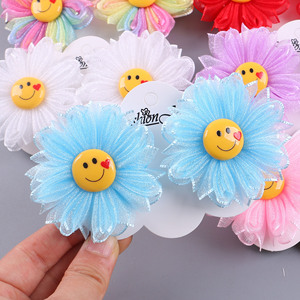 新款欧美亚马逊女童发饰可爱笑脸夹子小女孩花朵头饰宝宝花朵夹子