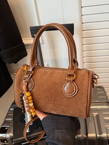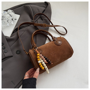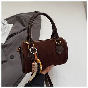 小众麂皮绒复古枕头包包女2025新款时尚百搭斜挎包通勤手提圆筒包