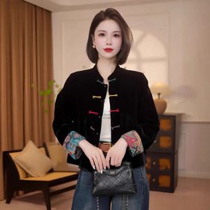 新中式双面穿丝绒提花短外套女早秋新款洋气显瘦国风盘扣立领上衣