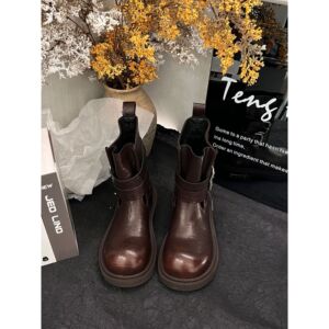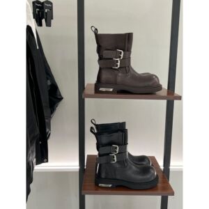 炸街girl~!小个子厚底绑带骑士靴皮带扣机车靴2025卡其色中筒靴