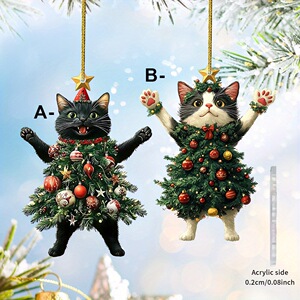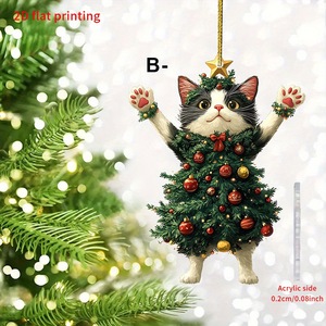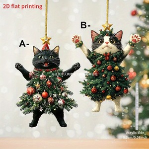 跨境热销2D 亚克力8*8cm,圣诞节穿圣诞树的小猫咪装饰亚克力挂