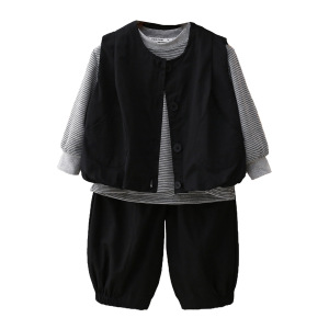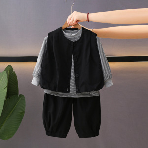 男童2025新款秋套装酷帅宝宝马甲三件套休闲打底衫儿童春秋款衣服