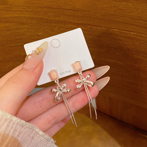 郁金香蝴蝶结流苏耳环女甜美百搭少女长款耳钉轻奢高级感耳饰批发