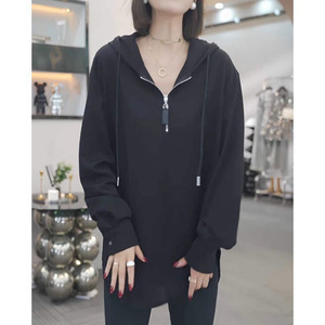 秋季新款宽松大码女装200斤半拉链连帽卫衣女中长款外套上衣60棉