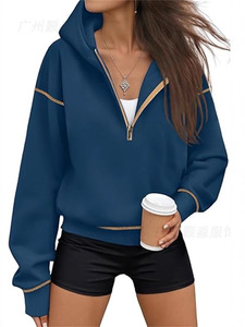 2025亚马逊欧美秋冬季女士卫衣连帽衫长袖半拉链短款休闲休闲风