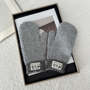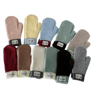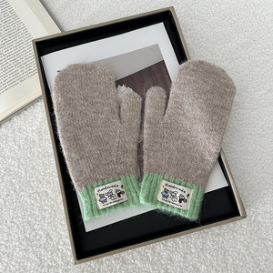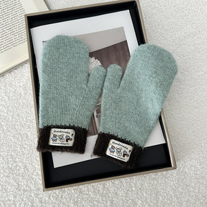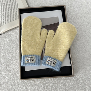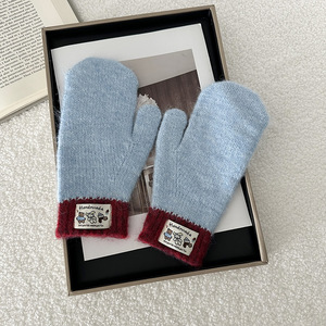 可爱三小只拼色手套可保暖抗冻女撞色触屏分指触摸屏手套学生手套