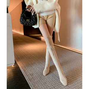 2025新款绒面过膝靴长筒靴女冬季加绒弹力靴显瘦低跟靴子长靴3cm