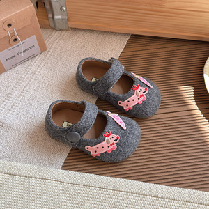 女童勃肯鞋2025春秋新款儿童时尚软底毛呢豆豆鞋女童可爱卡通单鞋